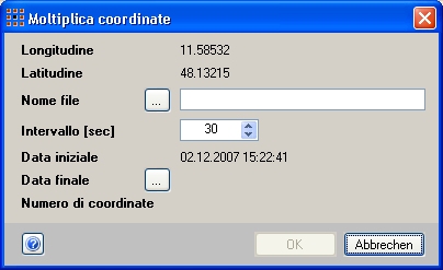Le coordinate duplicate vengono salvate come file GPS per poter essere utilizzate durante gli avvii successivi del programma. Inserite il nome completo del file da utilizzare o sceglietelo utilizzando i comandi...