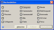 Hier werden für alle zur Verfügung stehenden Daten Check-Boxen angezeigt. Wählen Sie beispielsweise Personen und Autor aus und klicken anschließend auf die Schaltfläche Nachselektion, werden alle Bilder gesucht, die vom aktuellen Autor stammen und auf denen alle Personen abgebildet sind, die aktuell in der Hauptmaske angezeigt werden.