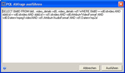 Wird aktuell ein Video angezeigt, öffnet sich der Dialog zur direkten Eingabe von PQL, in dem zu den gewählten Optionen die passende Suchabfrage generiert wurde´.