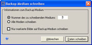 Der Dialog zur Eingabe der zu erstellenden Medien-Nummer wird nicht geschlossen, sondern kann dazu genutzt werden, das nächste Medium in das entsprechende Verzeichnis zu kopieren. Falls Sie nicht genügend freien Speicherplatz auf ihrer Festplatte haben, müssen Sie zuerst den Inhalt für das erste Medium verschieben schreiben und erst anschließend mit dem nächsten Backup-Medium fortfahren.