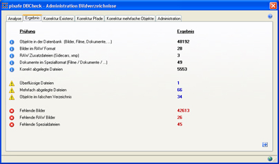 Nach der Detail-Analyse der Bildverzeichnisse steht das Ergebnis auf dem Reiter Ergebnis zur Verfügung: