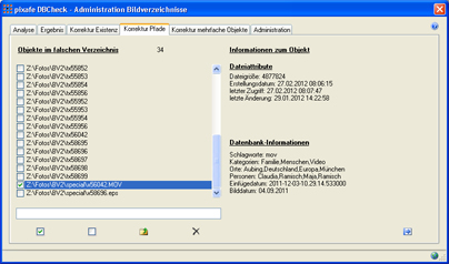 In diesem Reiter können Objekte, die in falschen Verzeichnissen gefunden wurden in die korrekten Verzeichnisse verschoben werden. Es können einzelne / alle gefundene Objekte markiert und verschoben werden oder einzelne Korrektueren vorgenommen werden.