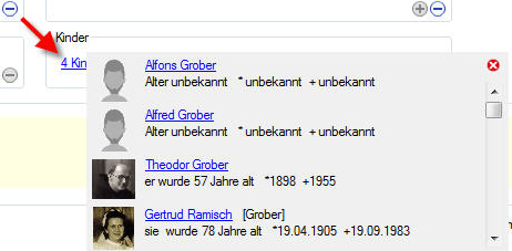 Hier werden die Personen nach Familien gruppoert aufgelistet:
