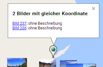 Übersicht mit Informationen zu allen Bildern, die genau an dieser Position auf der Karte aufgenommen wurden:
