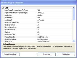 am unteren linken Bereich des Servicemanagers kann die web.config des Webservers eingestellt und gespeichert werden.