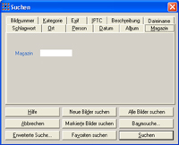Mit Hilfe dieses Dialogs (genauer gesagt dem Reiter auf dem Dialog zur Suche ) suchen Sie Bilder eines Diamagazin.