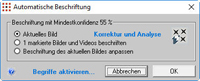 Wenn die angezeigte Mindestkonfidenz den eigenen Erwartungen entspricht, kann durch Klick auf OK die Bildbeschriftung bzw. die Beschriftung von Videos durchgeführt werden.