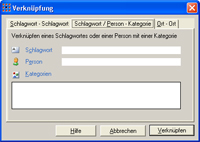 Mit dieser Verknüpfungsvariante können Personen oder Schlagwörter mit Kategorien verbunden werden. Das zu verknüpfende Schlagwort und die Person müssen sich schon vor der Verknüpfung in der Datenbank befinden.