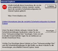 Sofern Sie aufgrund Sicherheitseinstellungen im Internet-Explorer folgende Anzeige erhalten: