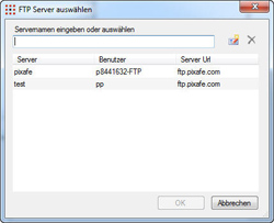 ![]() | Öffnet das Adressbuch der FTP Verbindungen, um bereits früher eingegebene Verbindungsdaten auswählen zu können |